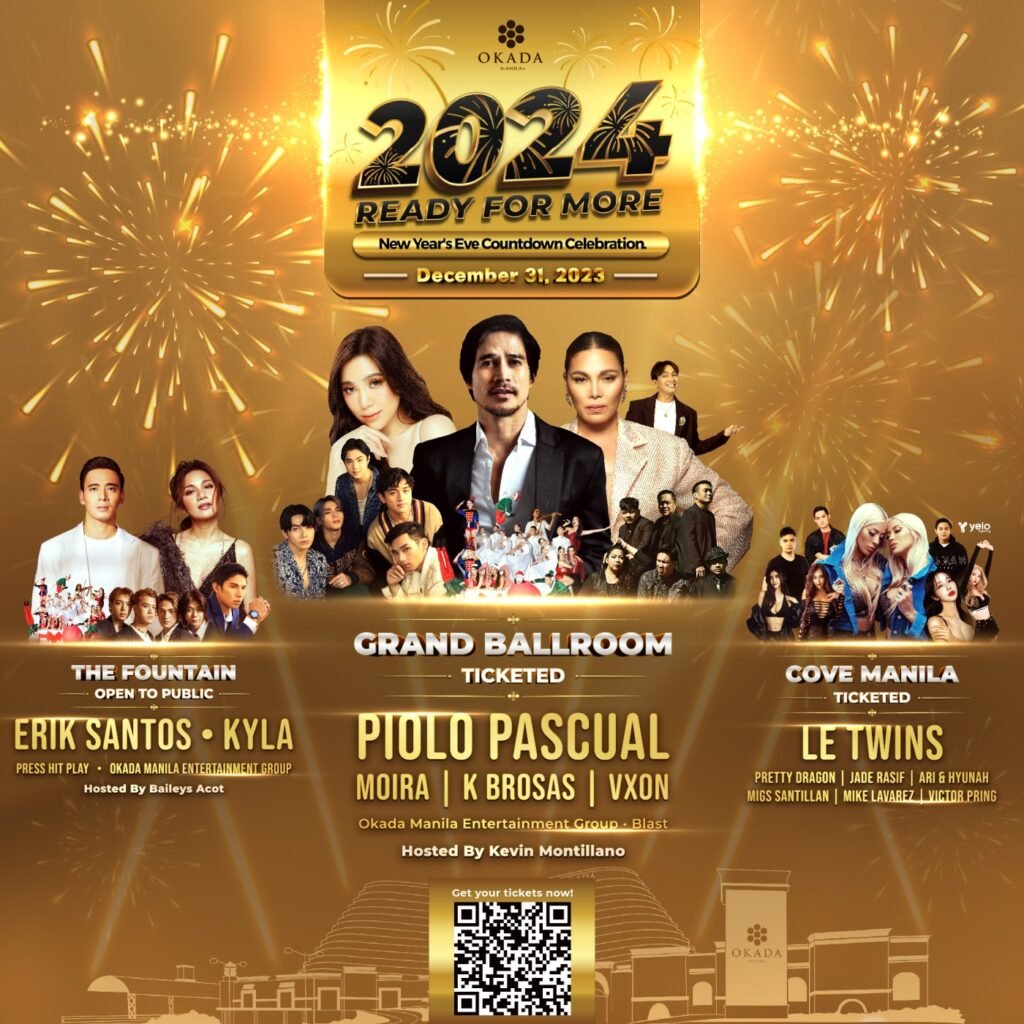 Tickets for the NYE Dinner Concert at the Grand Ballroom and the NYE Countdown Party at Cove Manila can be secured through okdmnl.ph/ReadyForMore