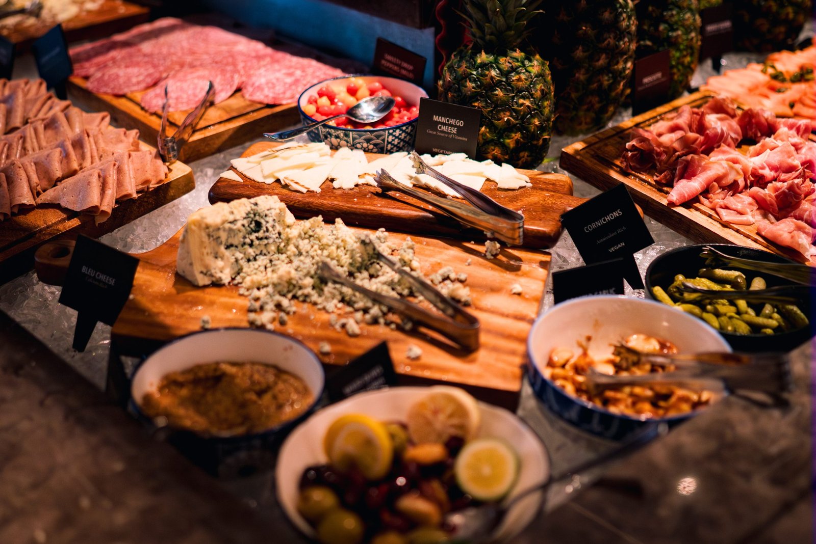 Between the parade of meats, the Market Table stands like a colorful oasis. Far beyond a typical salad bar, it brims with fresh vegetables, cheeses, charcuterie, tropical fruits, and even Brazilian specialties like feijoada. It’s a perfect counterpoint to the richness of churrasco — a spread that feels just as indulgent in its freshness as the fire-roasted meats themselves.