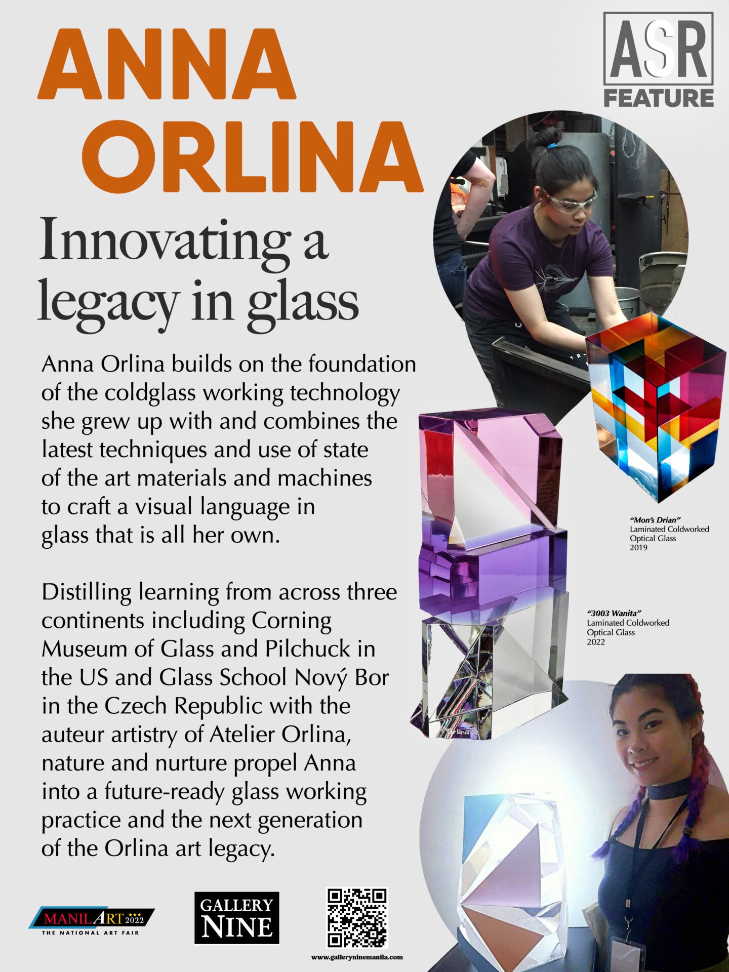 The Orlinas are a mainstay in the Philippine cultural landscape: when you hear the family name, Ramon Orlina’s lifetime of glass sculpture artistry would likely come to mind– pioneering and perfecting his signature method of cutting, grinding, and polishing glass cullets. But what makes a legacy is the way that they persist across generations. The Orlina line of excellence doesn’t just continue; it continues to evolve and innovate with Anna Orlina.