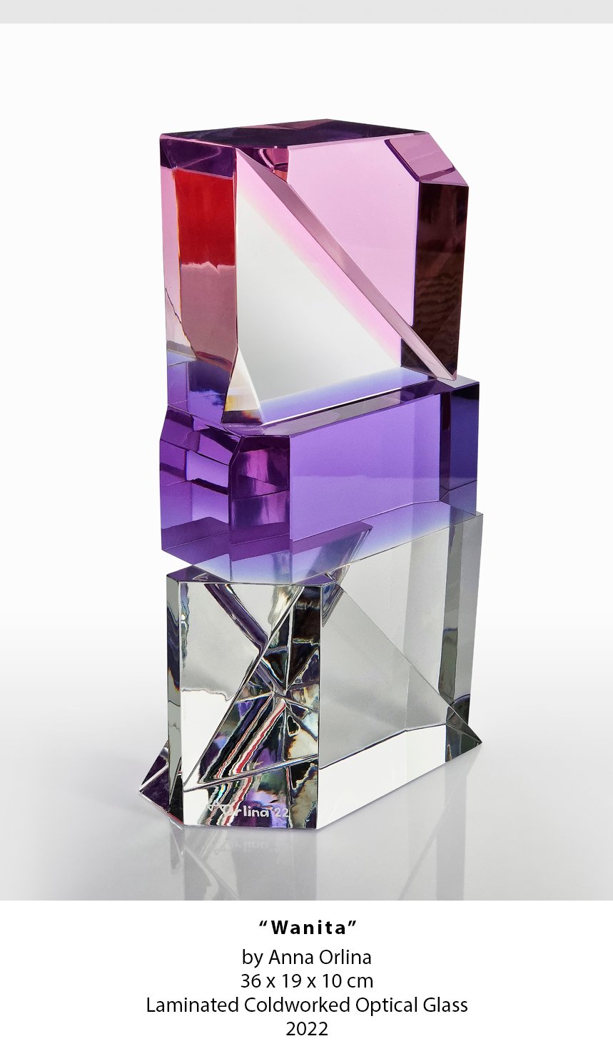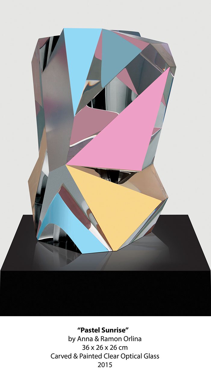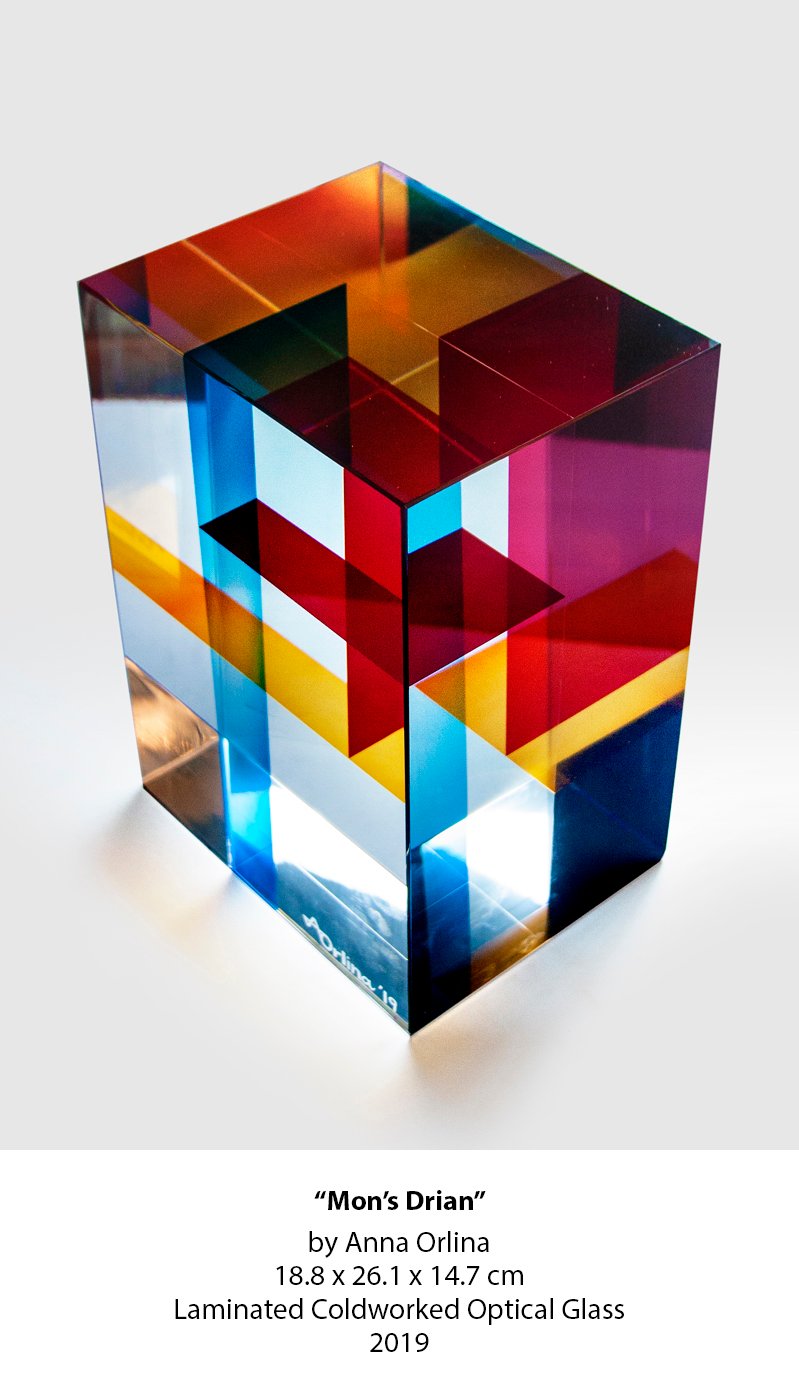 Anna acknowledges her father’s immense role in her artistic growth with gratitude… and no less than an award-winning artwork. Her first glass sculpture, Pastel Sunrise (2015) was crafted in collaboration with her father, maintaining Orlina Sr.’s signature geometric form while adding novel pops of pastel color. She went on to become one of the ten finalists during MullenLowe’s 2019 NOVA Awards with her sculpture, Mon’s Drian (2019), which was an ode to both Piet Mondrian and her father even in its title’s wordplay. The piece was done in Orlina Sr.’s classic coldworking technique and executed in the visual idiom of Mondrian, one of her father’s favorite artists.