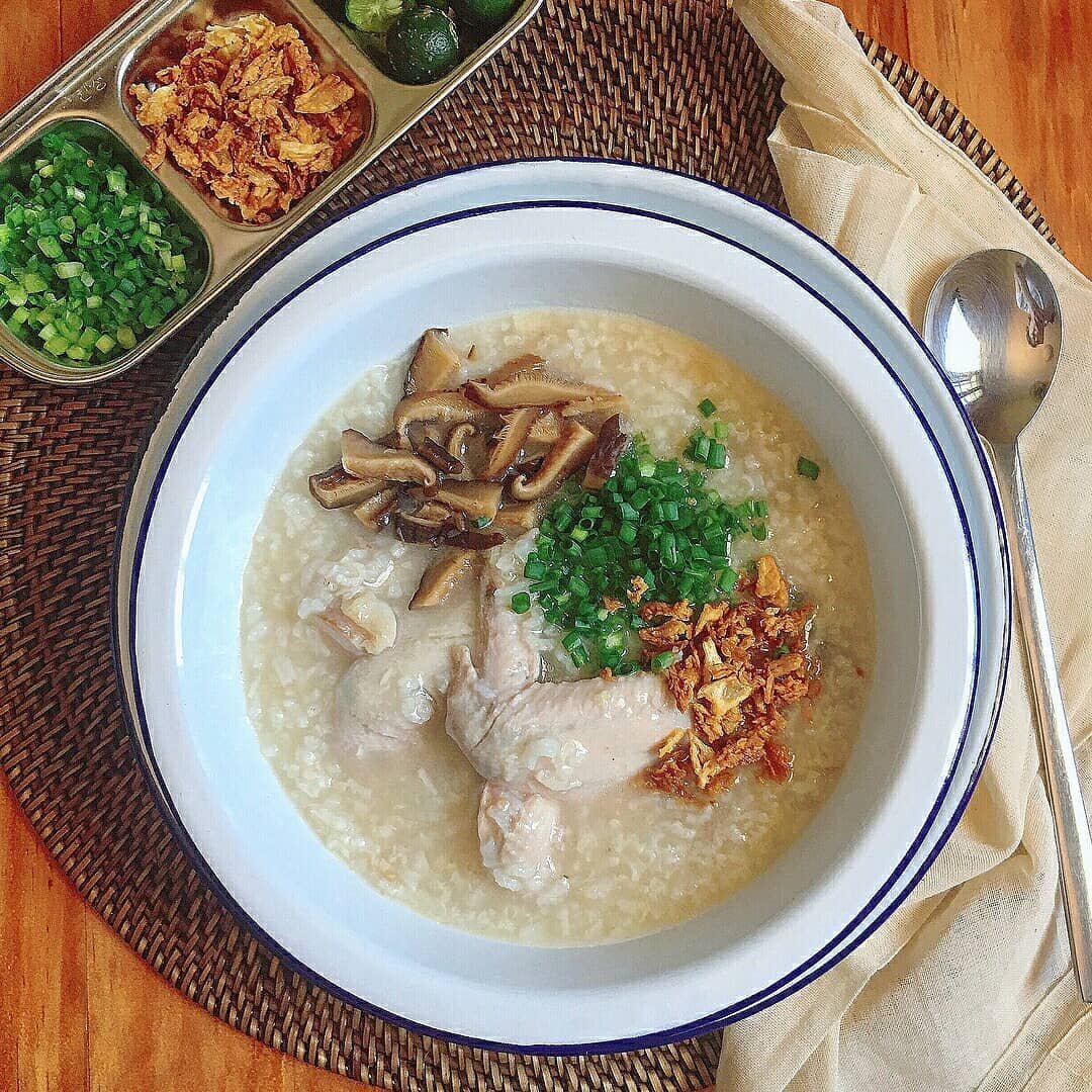 We used to wait until midnight to have Noche Buena. But we got so hungry while waiting, so my mother started cooking arroz caldo to tide over our hunger. It’s now a family tradition. She cooks it with a combination of chicken and beef tripe (like goto), with the broth made of boiled chicken bones.—Florence Temporal