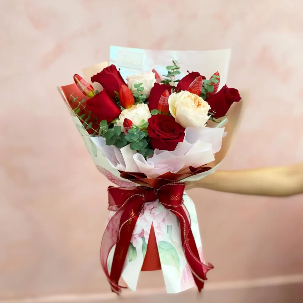 Combining David Austin roses, Ecuadorian roses, and tulips in one gorgeous bouquet, this Petalier creation will surely make your loved one blush!