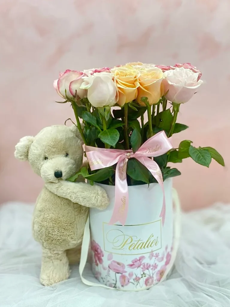 This adorable arrangement made up of fresh Ecuadorian roses and a cute teddy bear on the side will surely melt your loved one’s heart. Plus, you can choose the color of the roses!