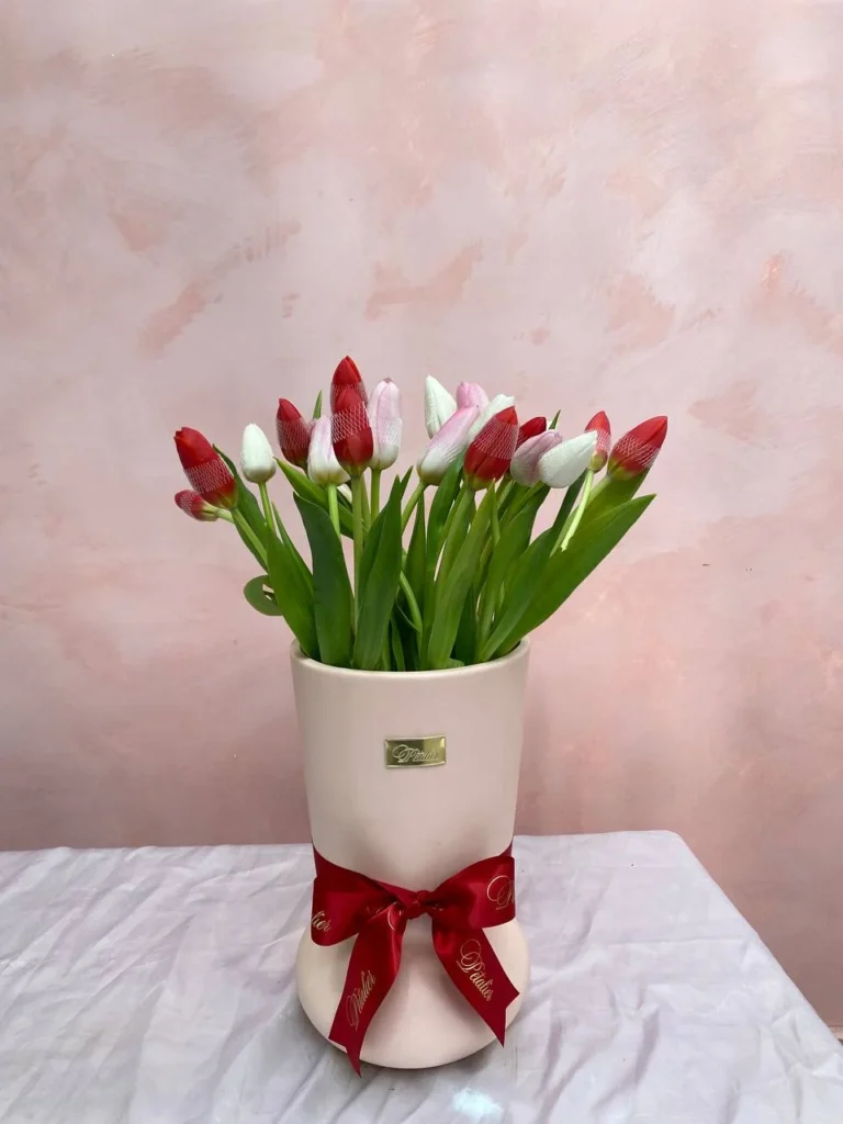 Give this beautiful vase arrangement with your choice of Ecuadorian roses or tulips to someone you love, and it will surely touch his/her heart.