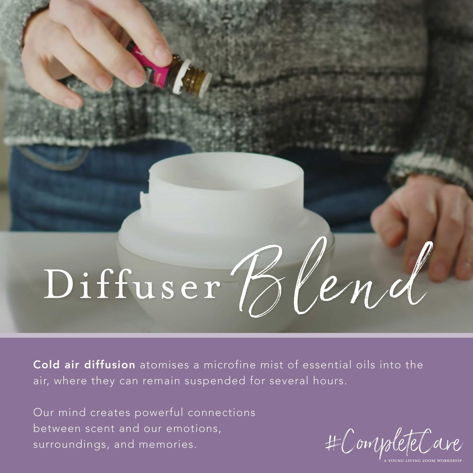 “Young Living’s Dewdrop Diffuser atomizes any mixture of essential oils and water into a microfine mist of microparticles into the air. In my experience, the aroma lingers in the air for several hours,” Geri shares, “For boosting my daily energy and focus, I like to use a blend of Lavender, Lemon, and Peppermint oils in the diffuser. It cleans stagnant air and promotes mental clarity.”