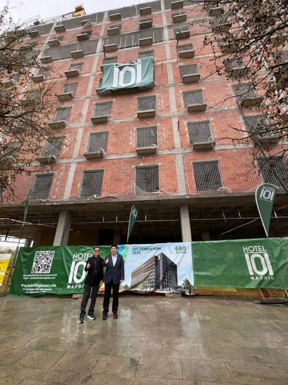 Mang Inasal Founder Injap Sia and Jollibee Founder Tony Tan Caktiong conducts the Topping Off Ceremony of the 680-room Hotel101-Madrid, Spain in just 11 months from the start of construction. Set for full completion in December 2025 in time for the coming F1 Grand Prix in Madrid.