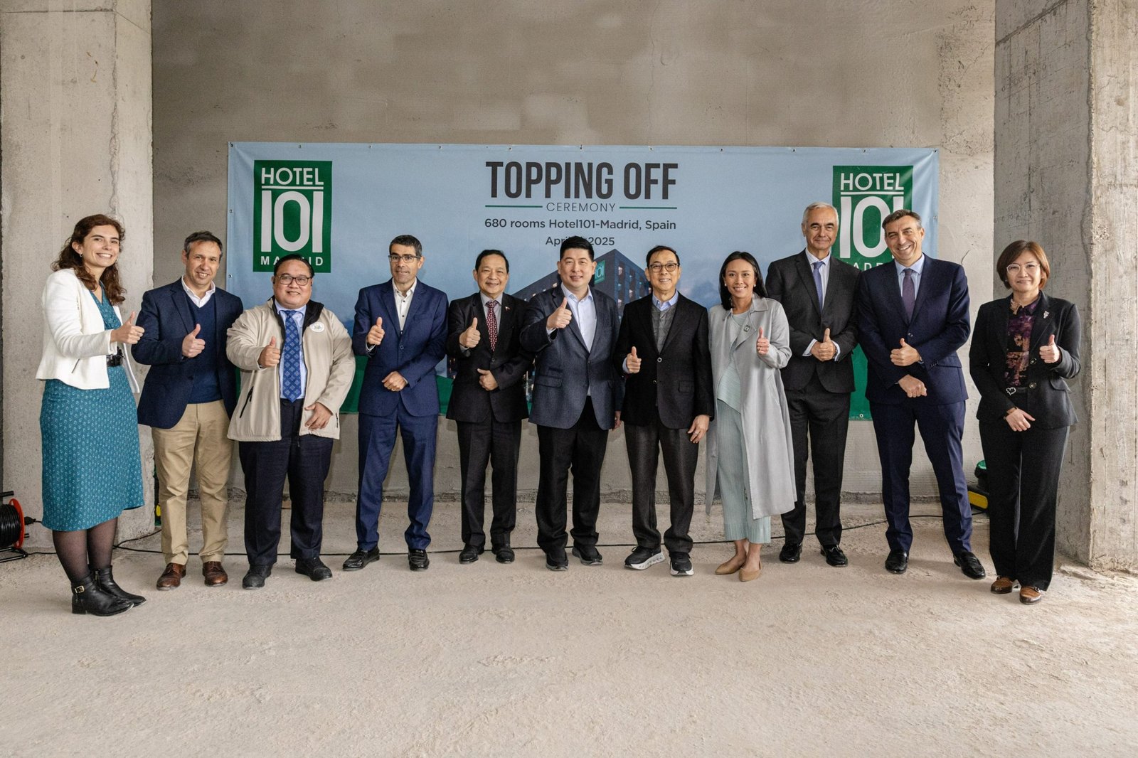Mang Inasal Founder Injap Sia and Jollibee Founder Tony Tan Caktiong conducts the Topping Off Ceremony of the 680-room Hotel101-Madrid, Spain in just 11 months from the start of construction. Set for full completion in December 2025 in time for the coming F1 Grand Prix in Madrid.