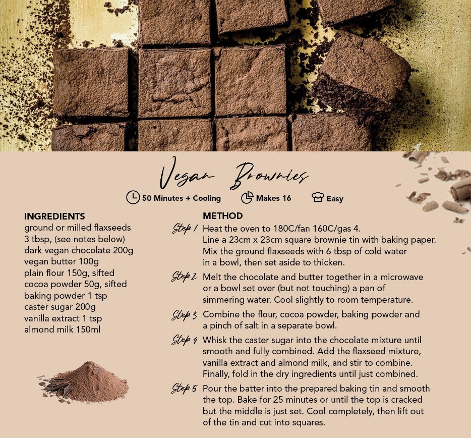 Note: Flaxseeds are a good substitute for eggs in vegan brownies because they help to bind the mixture