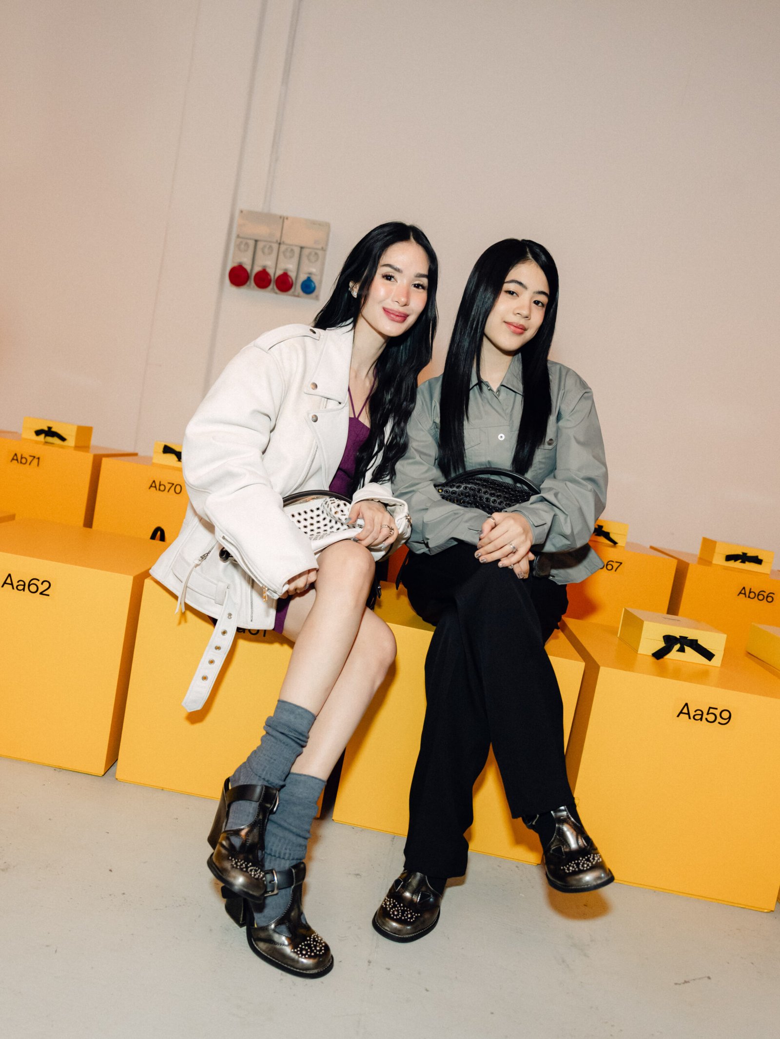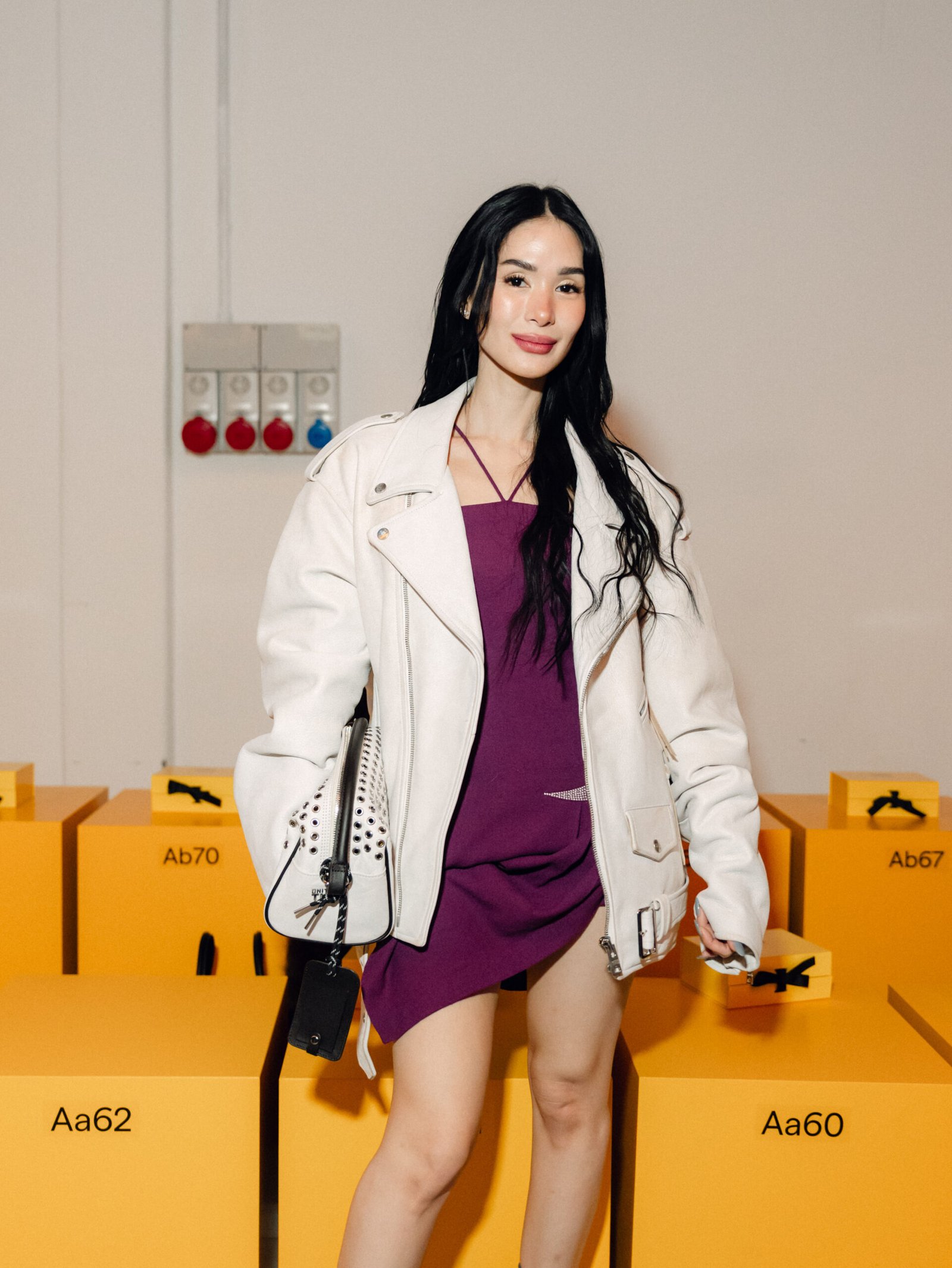 Meanwhile, Heart leaned into a refined elegance, wearing a sleek purple dress paired with a cream riders jacket, finished with a brand new pointed slingback heel with fold-over flap and belt from the Spring/Summer 2026 collection.