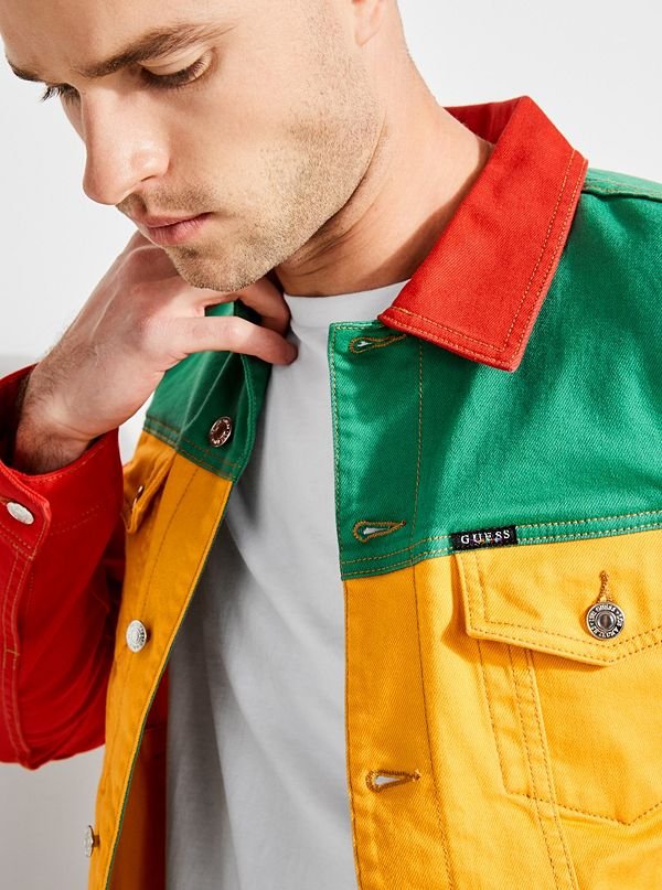 The men’s collection also offers color-blocked denim and vibrant track suits that lend a relaxed feel. Oversized men’s tee’s dipped in red, yellow and green tie-dye are seen alongside multistriped shirts stamped with the “VIBRAS” album artwork and pair well with the kickboxing Vibras shorts. The GUESS Vibras collection also offers a variety of swimwear for both men and women in a bright and bold color palette that can be accessorized with 12 eyewear styles, socks and a multicolor color-blocked fanny pack equipped with a checkerboard guitar strap.