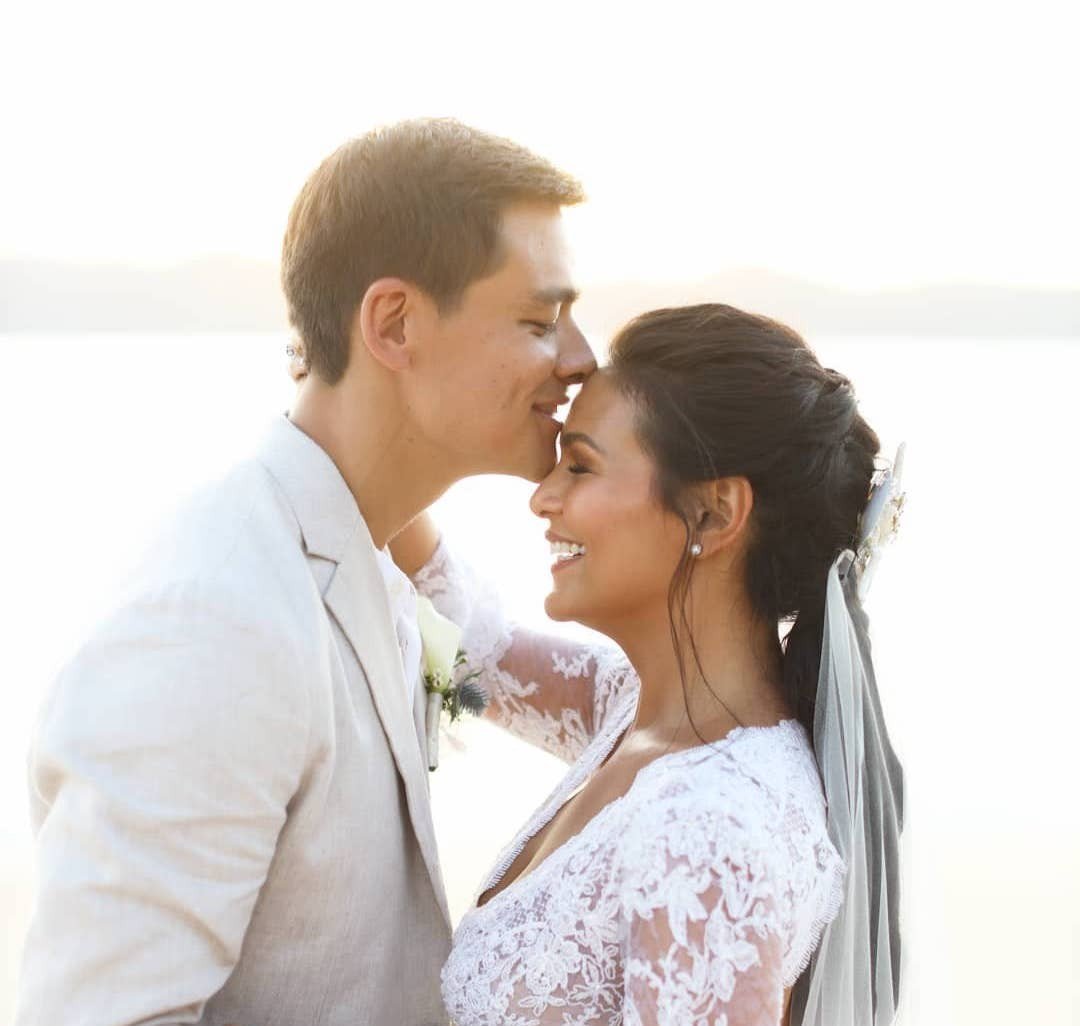 When the crowd finally set their eyes on the bride, her gaze was only directed at one person. It was her longtime beau, Ben Wintle,