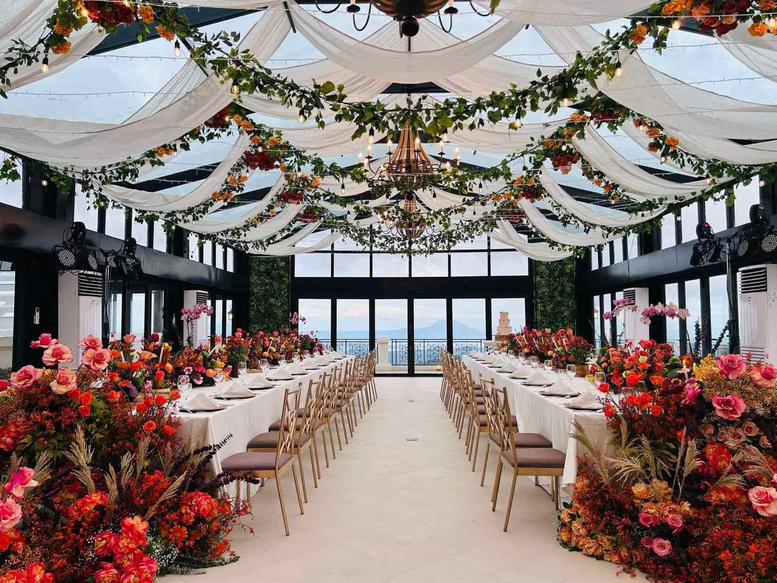 Beach: Exchange vows as the sun rises on the horizon, the azure sky and waters, with the gentle rhythm of the waves as your serenade. From barefoot ceremonies on Boracay’s white sands to vibrant seaside receptions, nature sets the scene. For grand celebrations, the Boracay Newcoast Convention Center offers a stunning venue that blends beachside charm with ballroom elegance.
