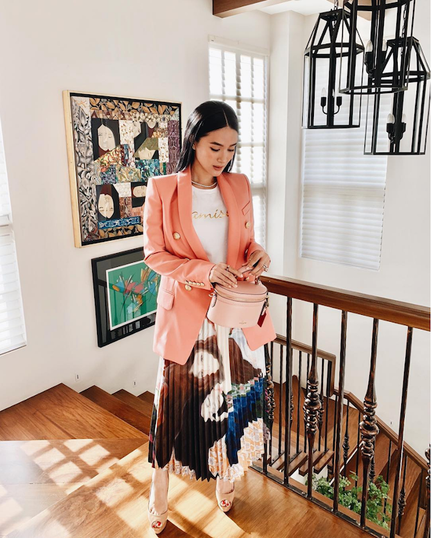 Take it from the darling of the Philippines herself, Heart Evangelista wore a tailored coral blazer that empowers an outfit while still maintaining a feminine palate. Heidi Klum is also seen carrying a coral-tinted leather tote that carried an otherwise causal look. Going with an all-coral dress is also a fashion-forward choice. This floral coral dress by H&M is also a good find.