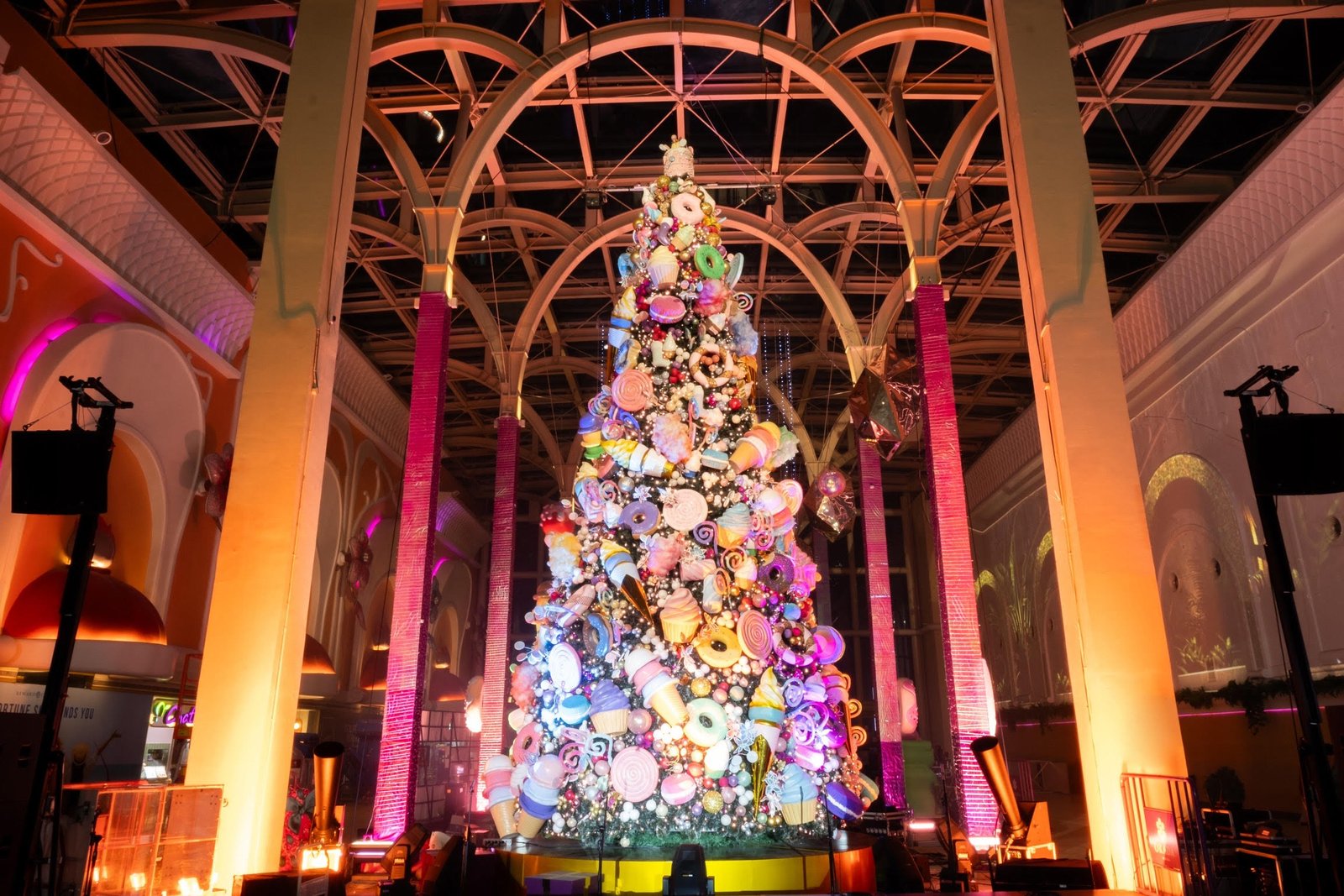 This year’s stunning 30-foot Christmas tree theme was sweetly inspired by a magical Christmas Wonderland. It is adorned with larger than life confectionery-inspired ornaments such as oversized candy canes, ice cream, and cupcakes.