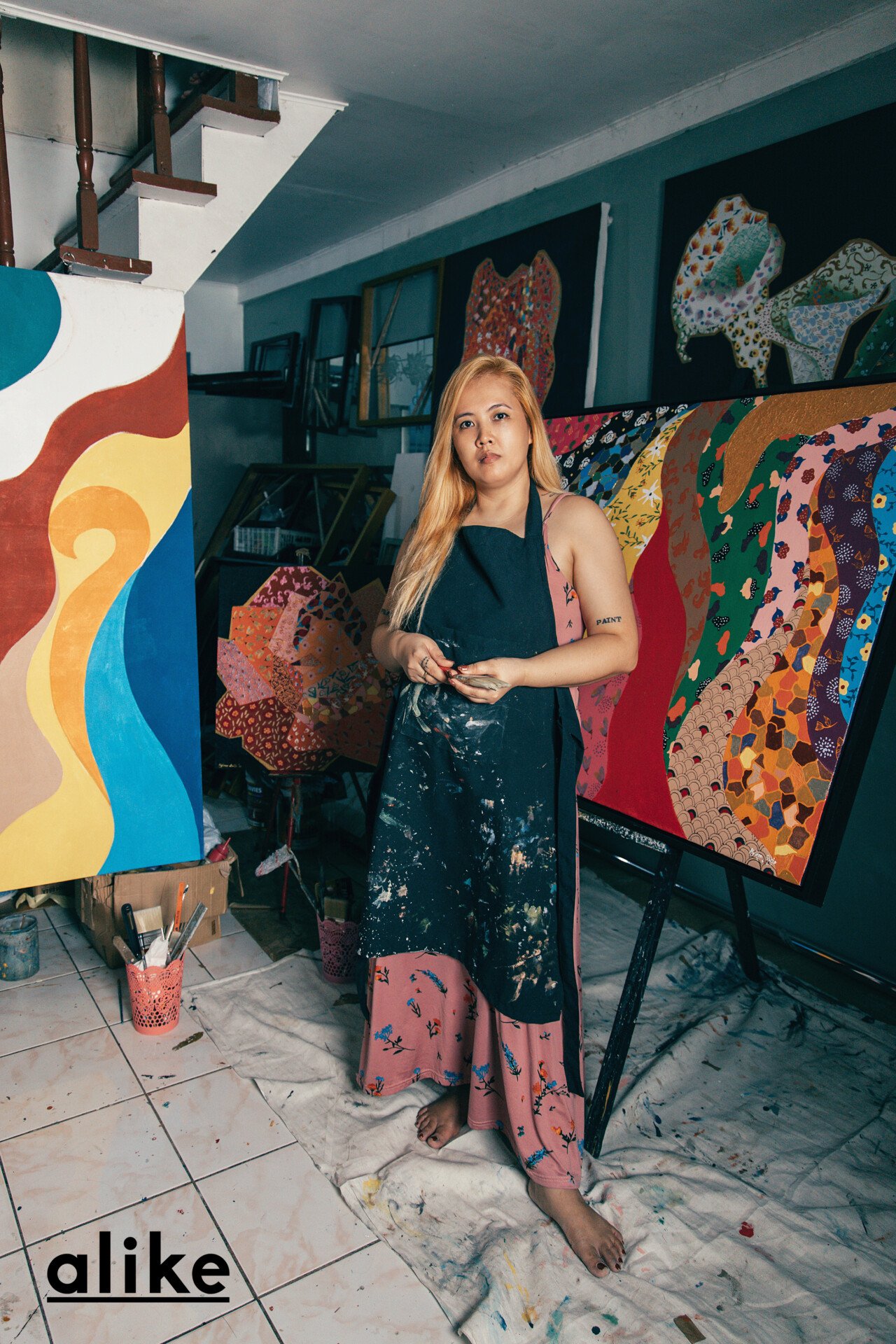 “Most artists have one style to be known,” shares the young mother of three, “but I’m still exploring.” Mylene reveals that her work is indeed, a “materialization of her youth.” She cites that her earliest ventures into art were inspired by her own mother, a tailor who left Mylene at a young age to work in Malaysia. “She sent us so many clothes,” recalls Mylene. Woven patterns, pleats, all manners of color— in a very real way, these textiles formed the fabric of Mylene’s childhood. “It was my coping in a broken family, as well as integrating my experience into art.”