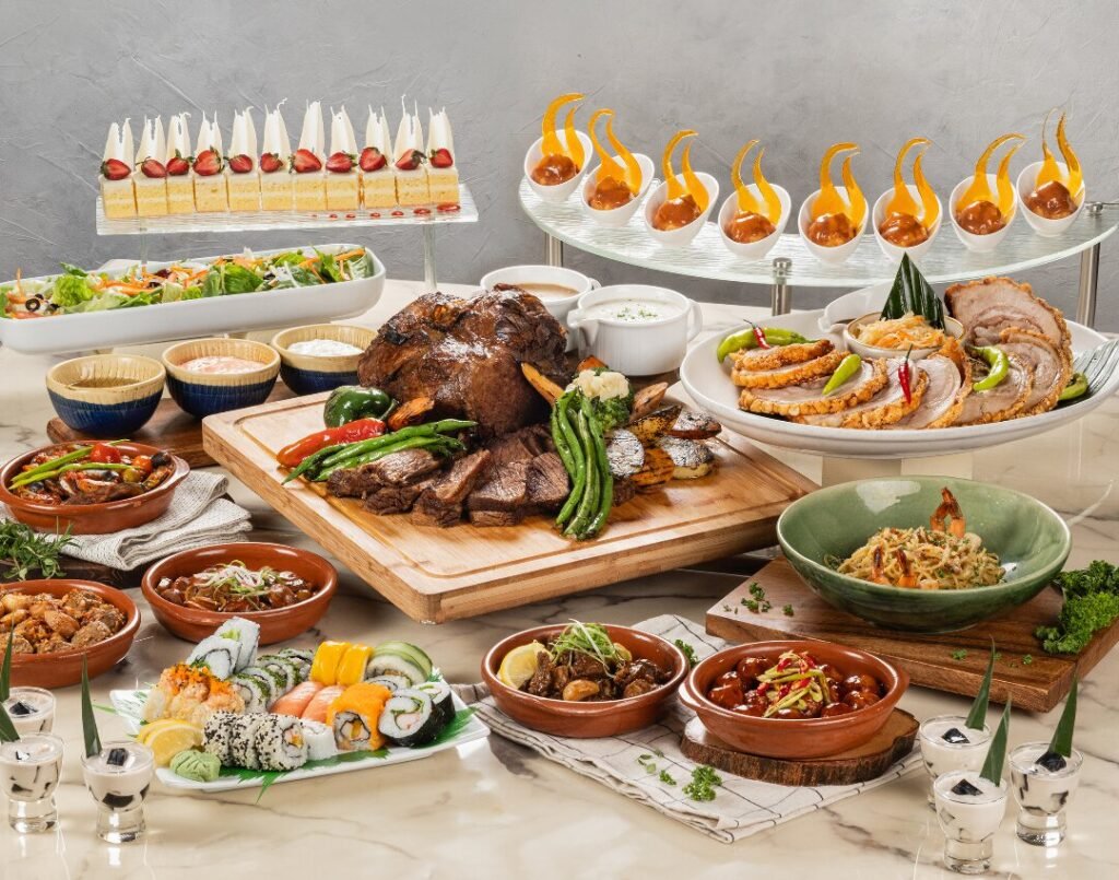 Diners can expect a feast for the senses each time with a robust selection of appetizers, mains, and desserts, not to mention exciting action stations that feature a variety of freshly cooked items such as pastas, tapas, and fajitas, grilled meats, oven-baked pizzas, sizzling fried sisig, and many more! Mainstays like the salad bar, mixed sushi, cheese board, and premium beef carving will surely make each meal a worthy treat.