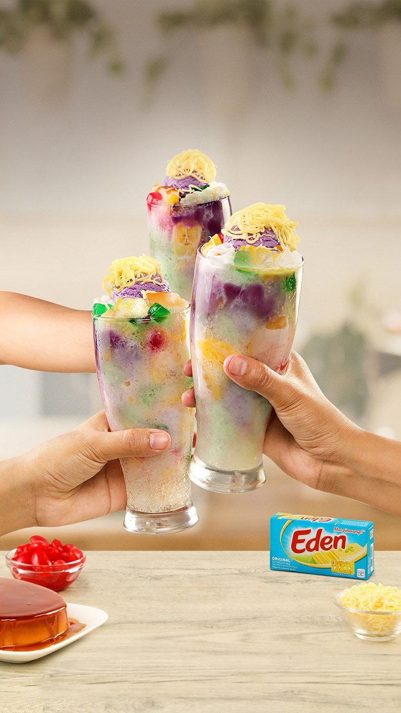 When someone says Pinoy desserts, first thing comes to mind is Halo-halo! Level up the usual recipe by adding grated Eden Cheese to the flavor and goodness of this all-time favorite dessert. A cup of Special Halo-halo with Eden Cheese will be enough reason to excite the entire family while staying at home.