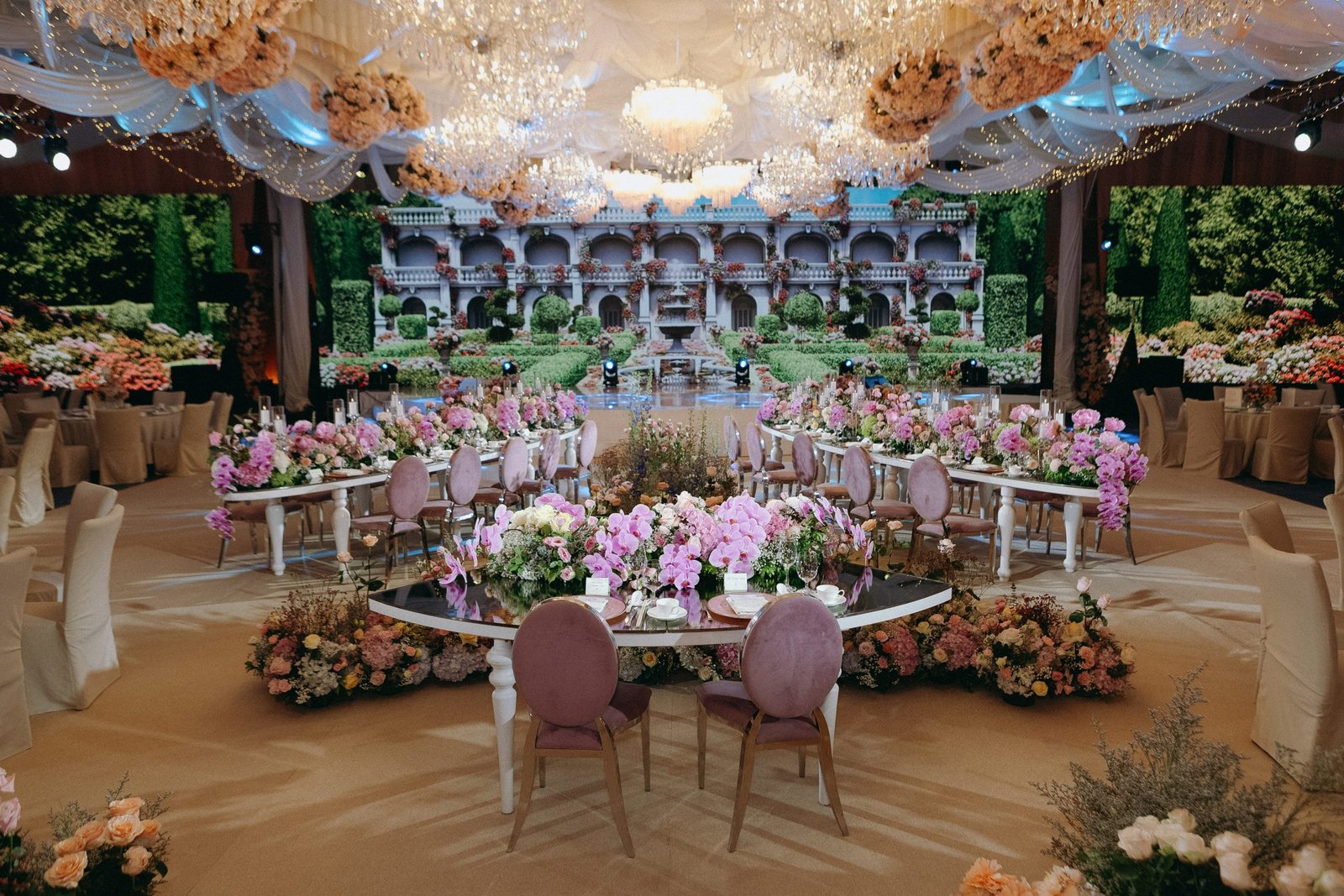 For their wedding, the couple drew inspiration from Meghan’s love for Jane Austen novels, British period dramas, and Henry’s time in London. The result was an enchanting “English rose garden” theme brought to life with pastel hues of light blue, blush, and lavender.