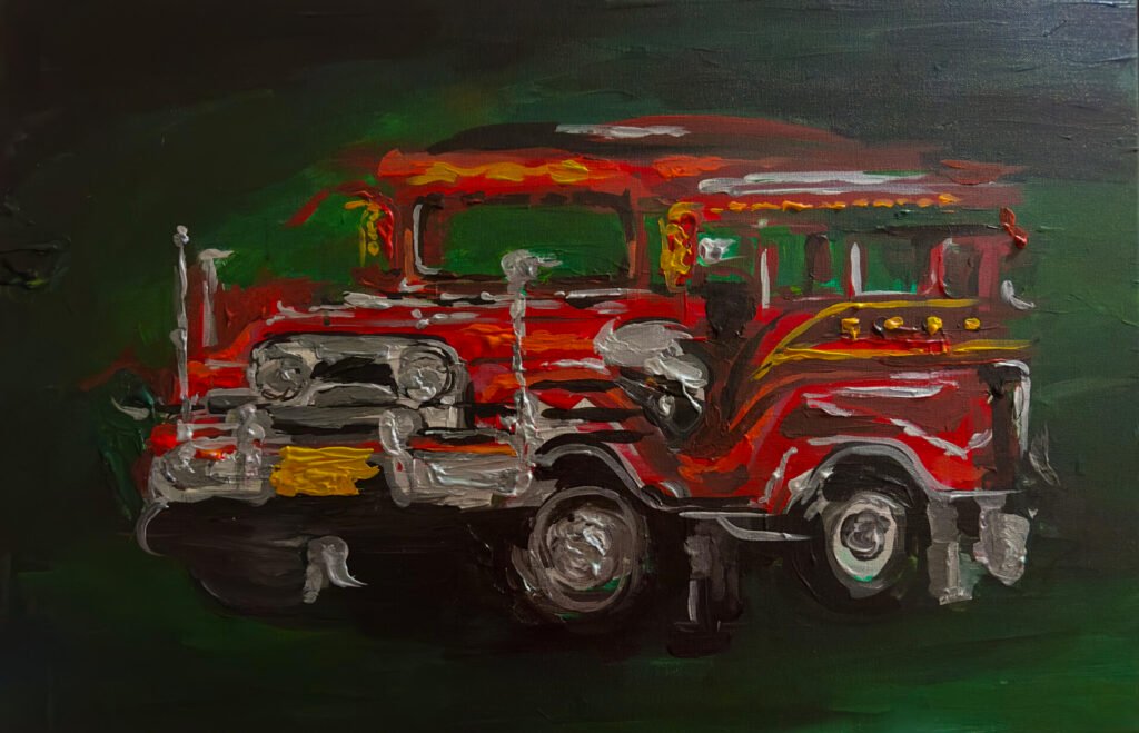 Sagaran considers the form and contours of vehicles, interpreting vehicles as diverse as commercially available BMWs and Vespas, to re-imagined Batmobiles of the DC universe. In one of his recent exhibits, he regarded automobiles as metaphors that will allow us to “move forward” — past the grimness and uncertainties during the pandemic. In this exhibition explores the abstraction side of art as he feature an abstracted version of the iconic 1955 Sarao Jeepney Ortiga, Sanvictores and Sagaran are featured in a three-man show, on view from March 1 to 15, at Robinsons Land ARTablado in Robinsons Galleria in Ortigas. The exhibition, billed as “The Speed of Abstract,” mines the intersection of the three artists’ diverse approaches.