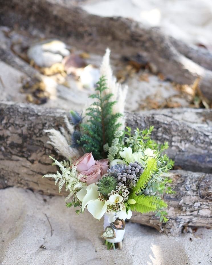 She was a beauty in motion, clad in the perfect beach wedding gown as she followed the small turns that the towering rustic and romantic flowers have paved for her.