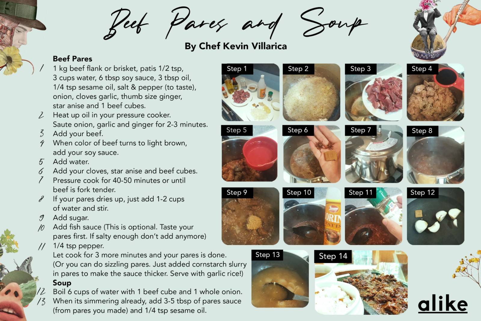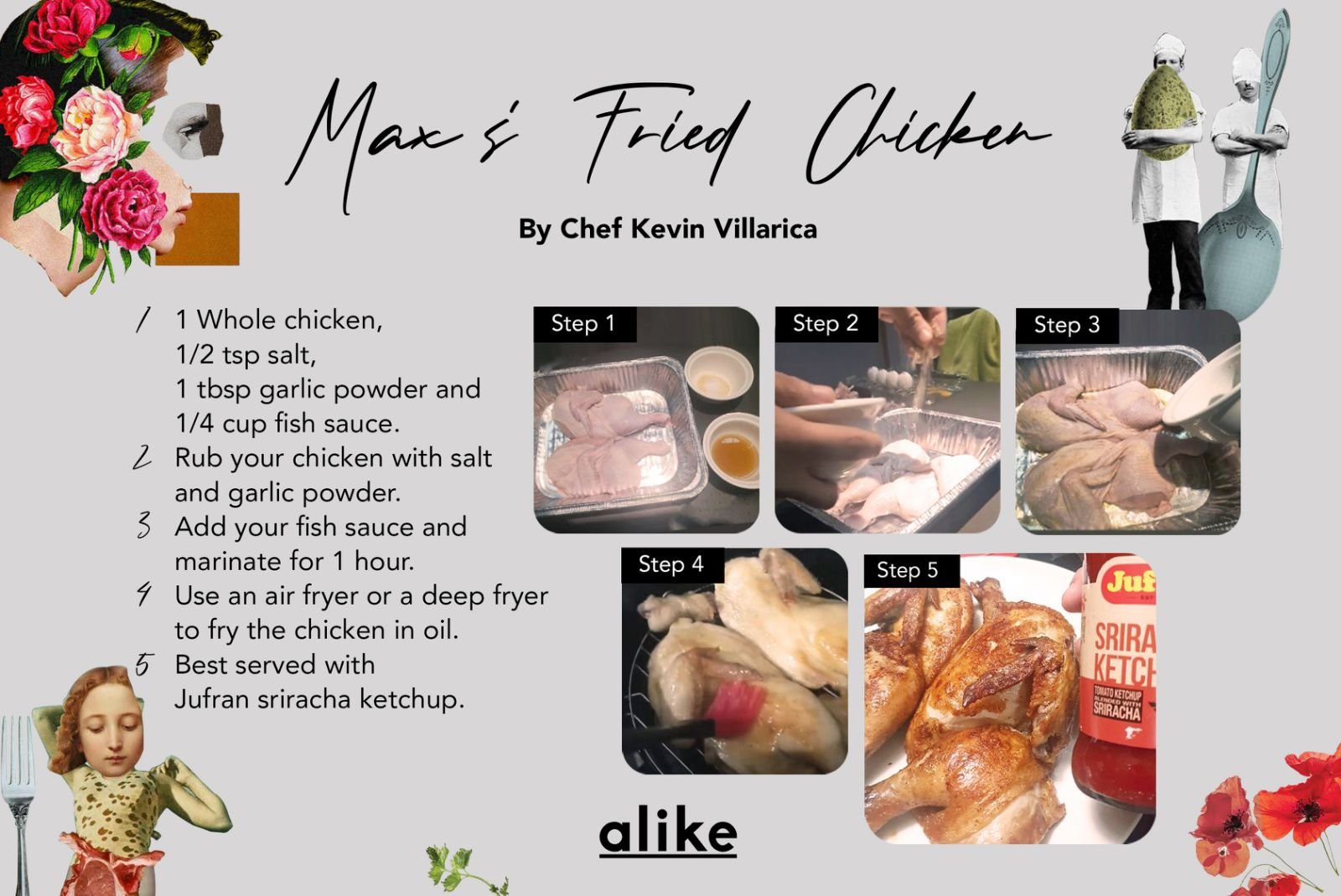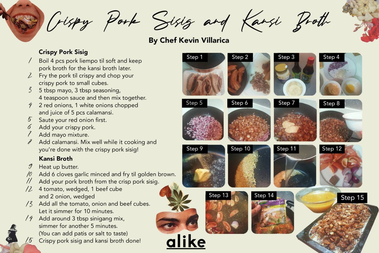 A quick scroll through his Instagram profile (@kevinvillarica) reveals a gallery of dishes–from roasted Hainanese chicken rice to the more familiar crispy pork sisig–all made from the comfort of his home. He also posts step-by-step videos of his recipes on his Instagram stories, eager to share them with his followers so that everyone can try them out at home.