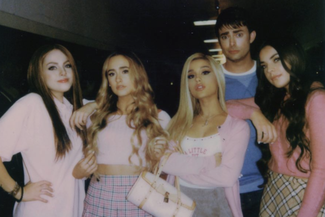 Another former Victorious star, Elizabeth Gillies appeared as Cady Heron and looks almost identical to Lindsay Lohan. In addition, Grande’s friends Courtney Chipolone and Alexa Luria appeared as Gretchen Wieners and Karen Smith – Regina George’s minions.