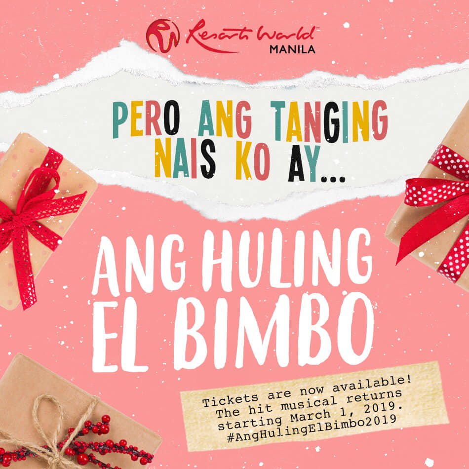 After their successful run last 2018, Resorts World Manila and Full House Theater Company are restaging “Ang Huling El Bimbo” for 2019! This musical is a story of friendship that features songs from one of the most icon Filipino bands ever—Eraserheads. Enjoy the nostalgia and feels that comes along with the bond formed between Filipinos. If you weren’t able to see it last year, don’t let the opportunity pass again!