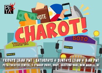 To end this 51st season, Philippine Educational Theater Association (PETA) is staging “CHAROT,” presenting local events and issues in a comical way, but also totally meaning what they say. Much like the word from where the title of the play was drawn, it is often used to downplay something serious to make it more acceptable. This interactive theatrical comedy will illustrate how ridiculous some of the current events have been. If you want to laugh and relax watching a socially-relevant play, this one will be your best bet!