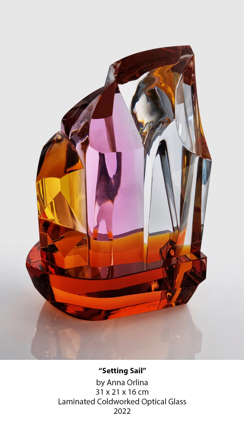 Anna acknowledges her father’s immense role in her artistic growth with gratitude… and no less than an award-winning artwork. Her first glass sculpture, Pastel Sunrise (2015) was crafted in collaboration with her father, maintaining Orlina Sr.’s signature geometric form while adding novel pops of pastel color. She went on to become one of the ten finalists during MullenLowe’s 2019 NOVA Awards with her sculpture, Mon’s Drian (2019), which was an ode to both Piet Mondrian and her father even in its title’s wordplay. The piece was done in Orlina Sr.’s classic coldworking technique and executed in the visual idiom of Mondrian, one of her father’s favorite artists.