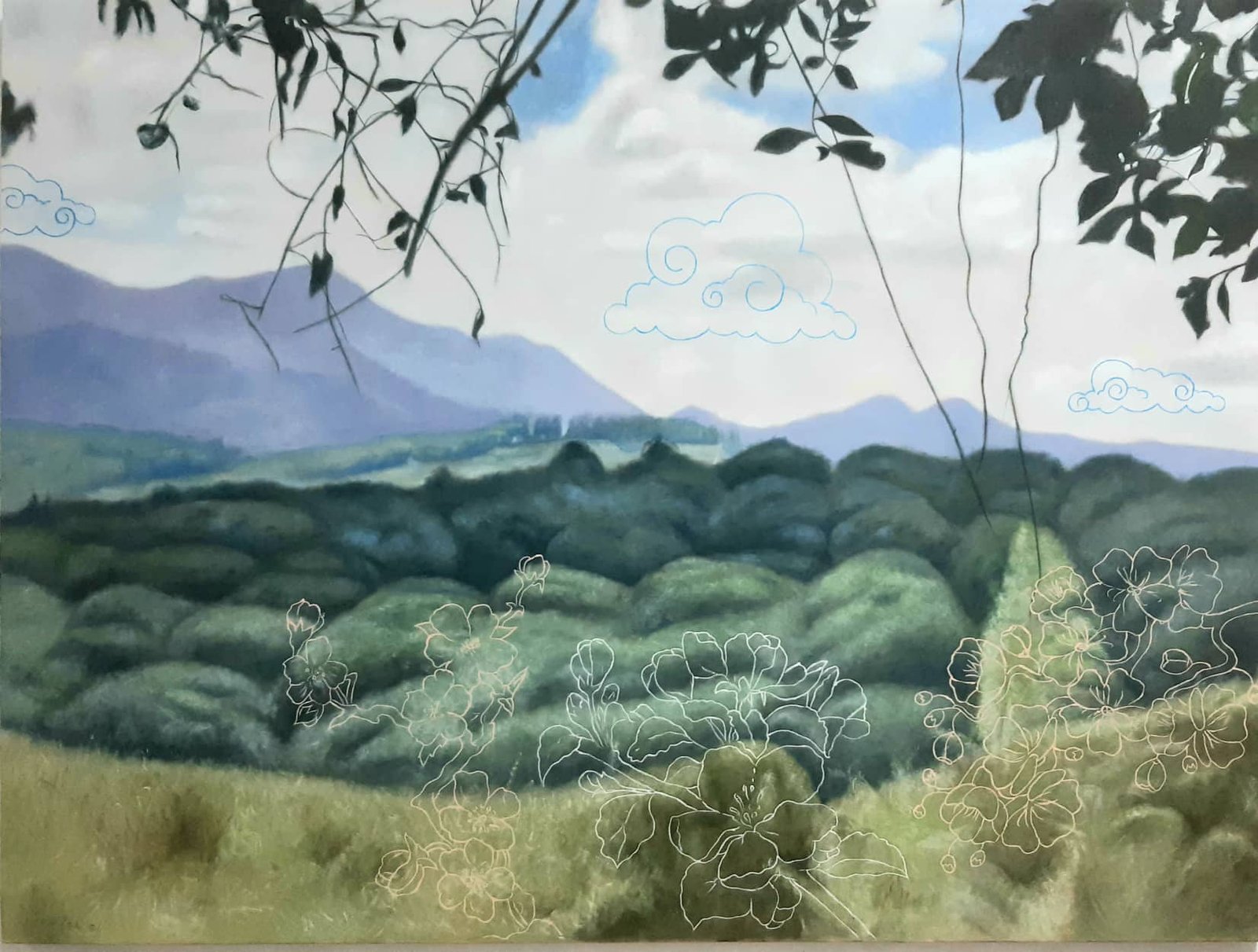 His paintings come from the surroundings we usually see from Tagaytay, Laguna, Cavite, and Batangas – some of the most beautiful places outside the city we visit to escape. Through his paintings, he hopes to take our mind there and calm our minds just like how nature has eased his. Milileu is Lebajo’s 21st one-man show in his 32 years of painting. These new works are totally different from his traditional built-in, repetitive figures that he’s popularly known for.