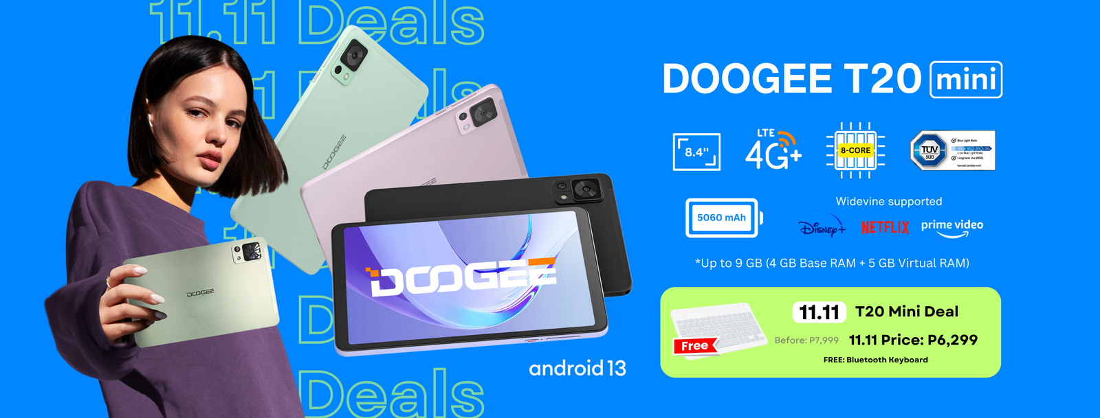 | T20 Mini (9GB + 128GB) | P7,999 | P6,299 | P1,700 | BT Keyboard |