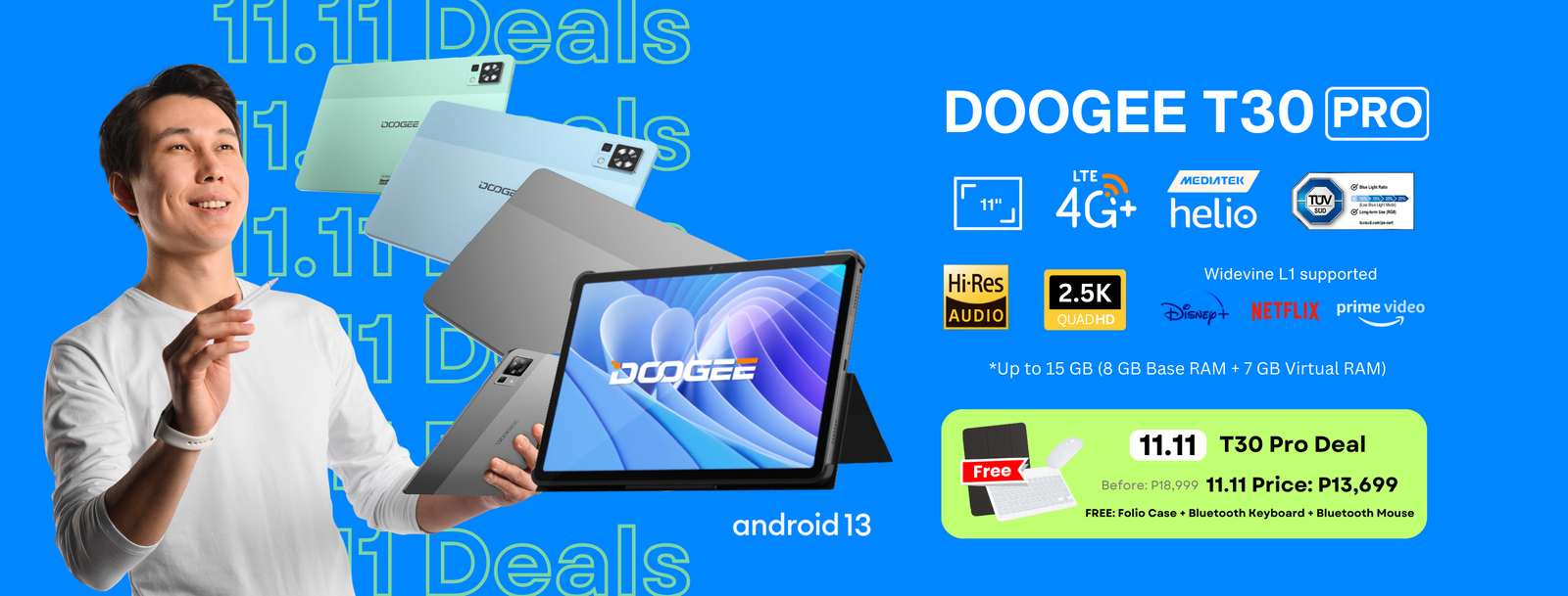 | T30 Pro (15GB + 256GB) | P18,999 | P13,699 | P5,300 | Folio Case, BT Keyboard, BT Mouse |