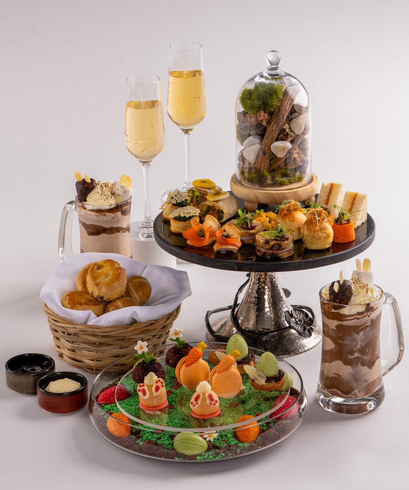 These include a savory chorizo and egg mousse tea sandwich, an orange cinnamon sable, Cheshire Pork Pie with glazed apple, and more. Enjoy it all with a pot of tea, an easter-inspired mocktail or sparkling wine, and freshly brewed coffee.