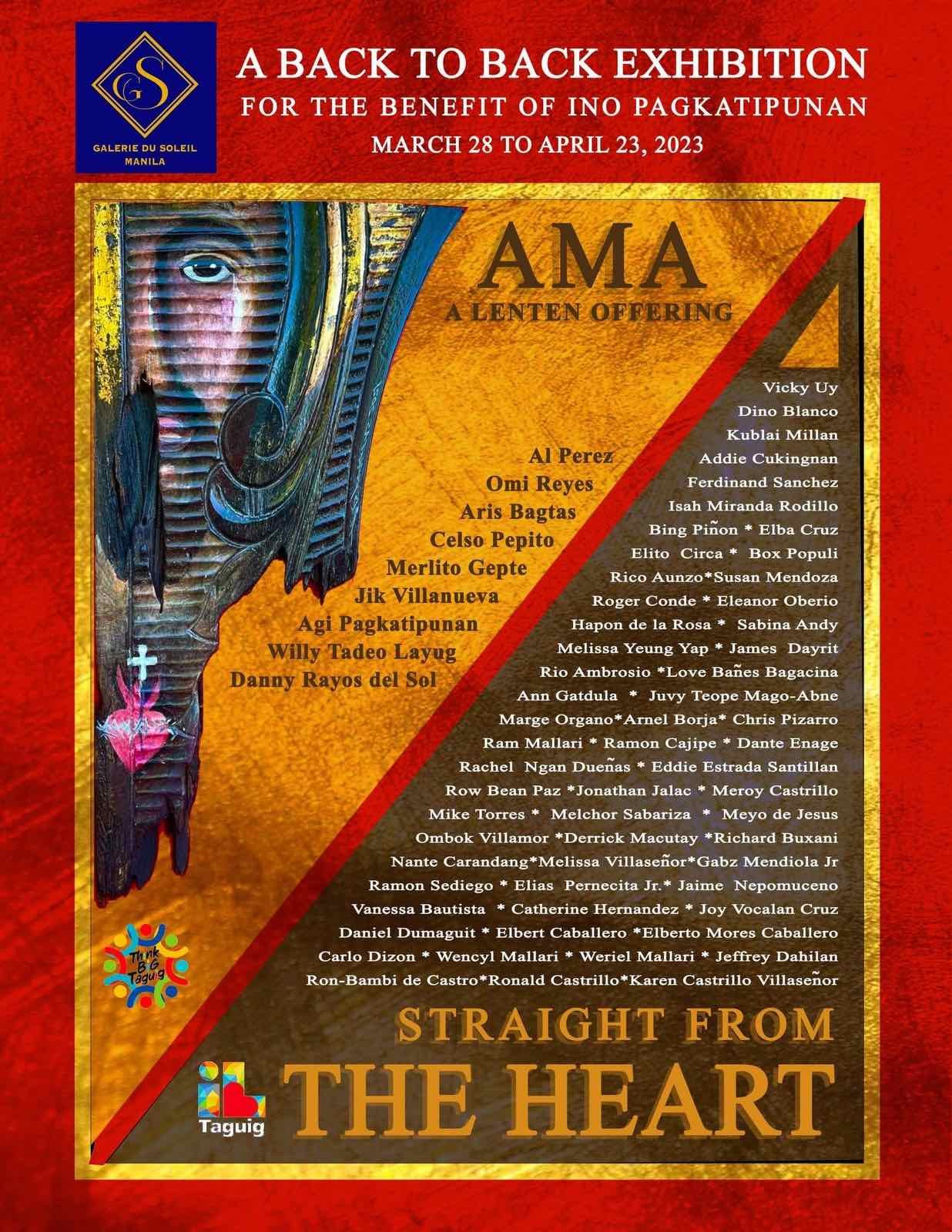 Since opening its doors on December 8, 2022, Galerie du Soleil MNL, an emerging art and culture hub in the heart of Taguig, now launches its third exhibit, two back-to-back group shows titled “Ama” – a Lenten offering and “Straight from the Heart” running from March 28 until April 23, 2023.