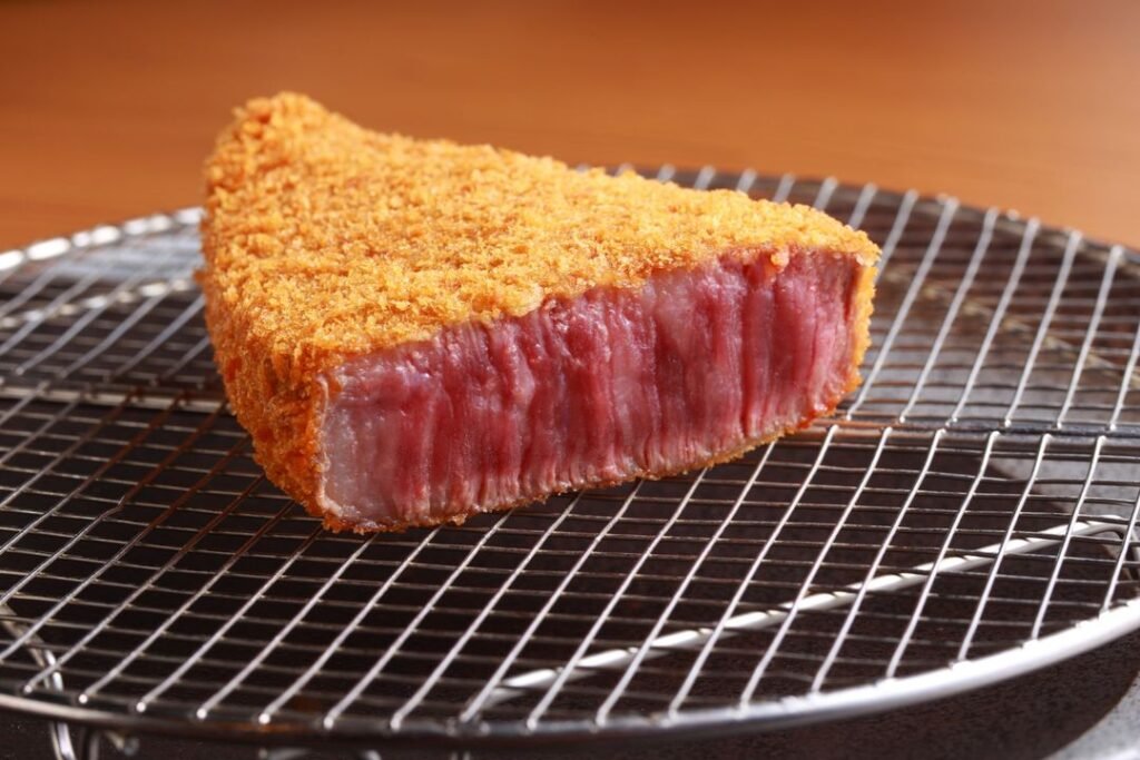 Gyukatsu is a dish consisting of beef cutlets, in contrast to tonkatsu, which is made from pork cutlets. It is known for its unique preparation method where the beef is often left rare in the center, resulting in a crispy outer coating and a juicy, beefy, perfect medium rare middle. The key to its exceptional taste lies in the use of only premium beef, ensuring a high quality and flavorful dining experience.