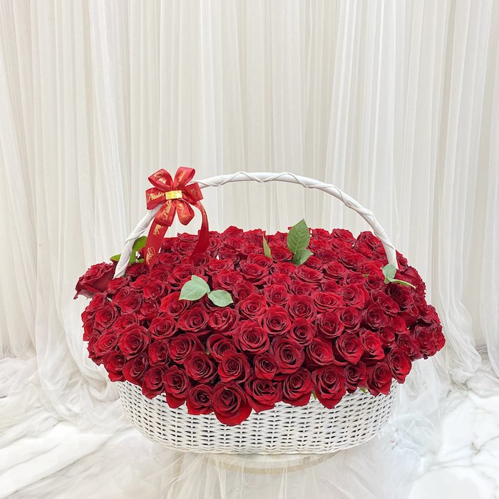 Roses are red, violets are blue, this basket filled with Ecuadorian roses is the perfect gift for your boo!