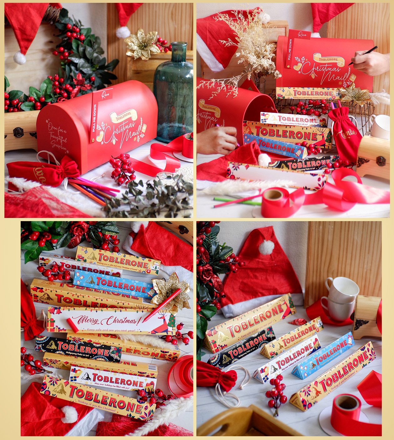 This season of giving, #BeMoreImaginative! Make Christmas more positive and thoughtful. Have a #TobleroneChristmas with the limited edition Toblerone Blank Packs, available in four favorite flavors— namely: milk chocolate, dark chocolate, white chocolate, and crunchy almond chocolate!