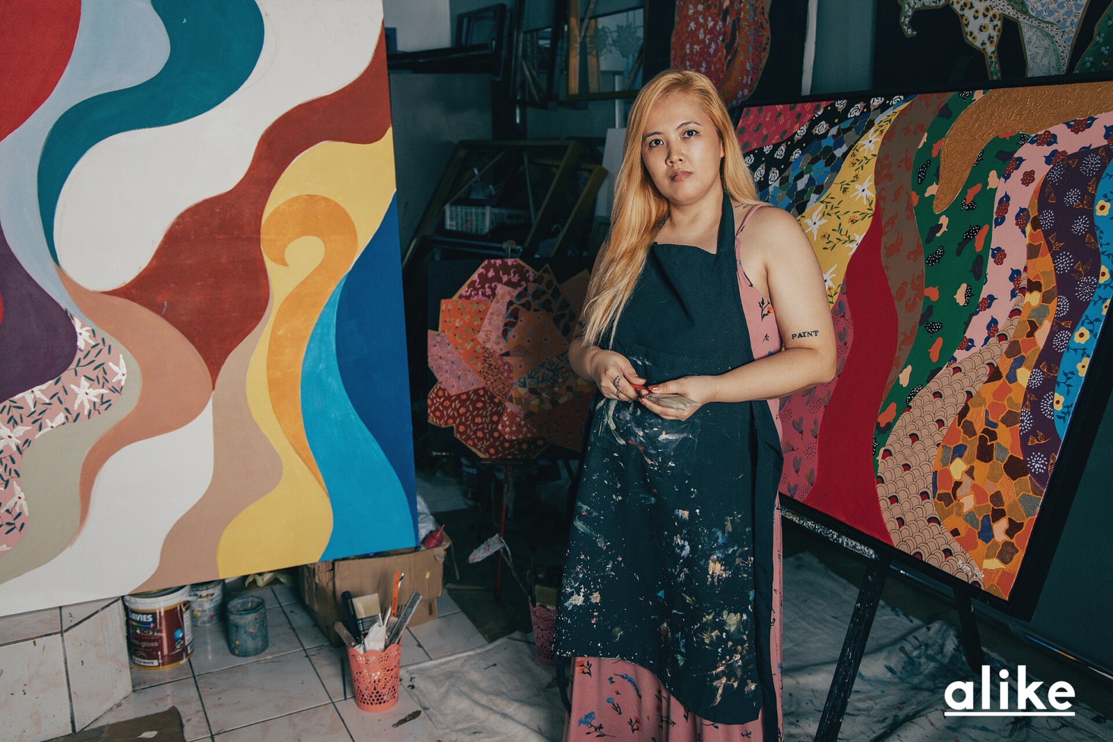 “Most artists have one style to be known,” shares the young mother of three, “but I’m still exploring.” Mylene reveals that her work is indeed, a “materialization of her youth.” She cites that her earliest ventures into art were inspired by her own mother, a tailor who left Mylene at a young age to work in Malaysia. “She sent us so many clothes,” recalls Mylene. Woven patterns, pleats, all manners of color— in a very real way, these textiles formed the fabric of Mylene’s childhood. “It was my coping in a broken family, as well as integrating my experience into art.”