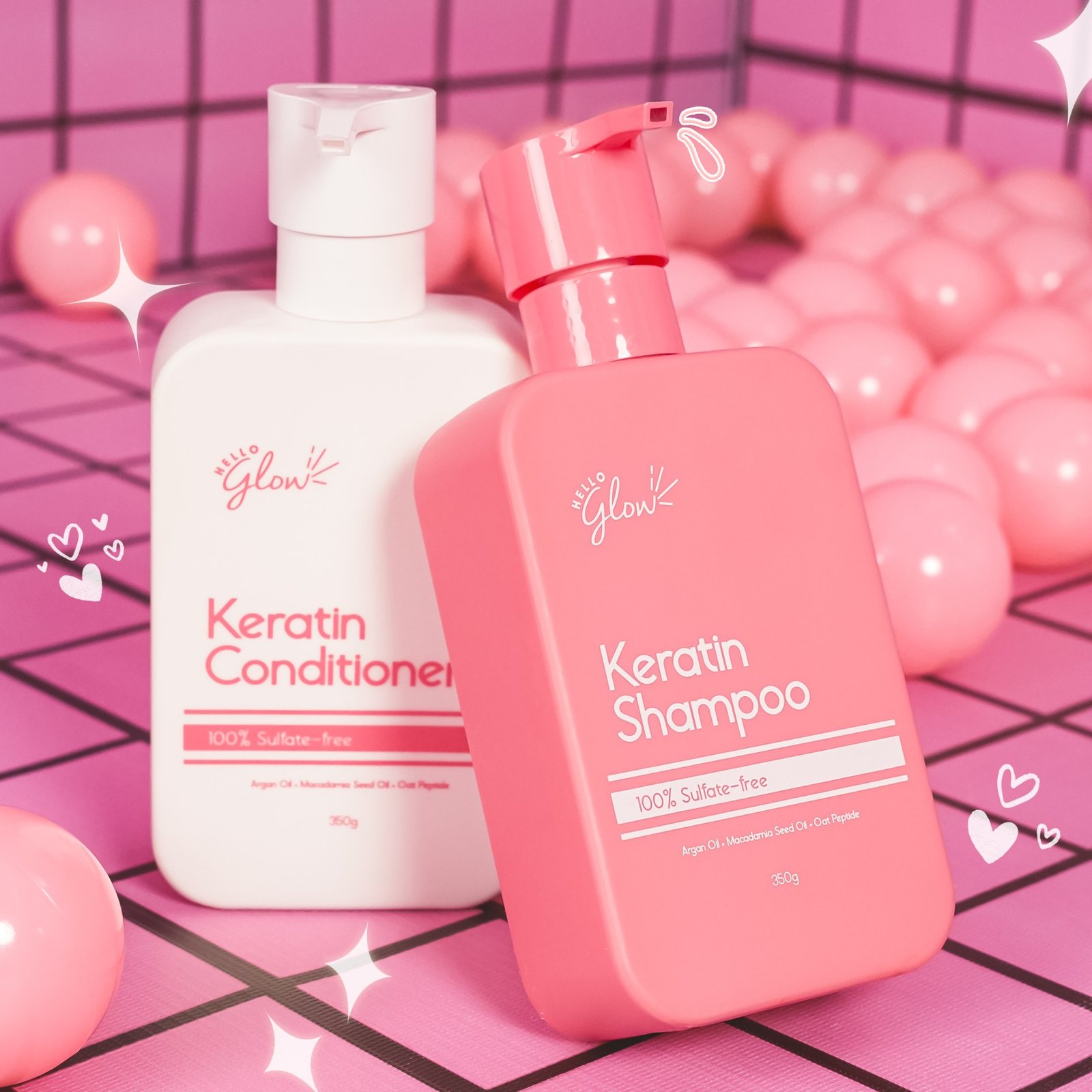 Experience the power of less foam and more care for beautiful, healthy hair with Hello Glow’s sulfate-free Keratin Shampoo and Conditioner—because your hair deserves to shine naturally!