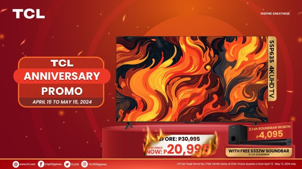 The TCL P635 Anniversary Promo runs from April 15 to May 15, 2024. For more information, please visit TCL’s official Facebook page or check out the TCL website at https://www.tcl.com/ph/en.