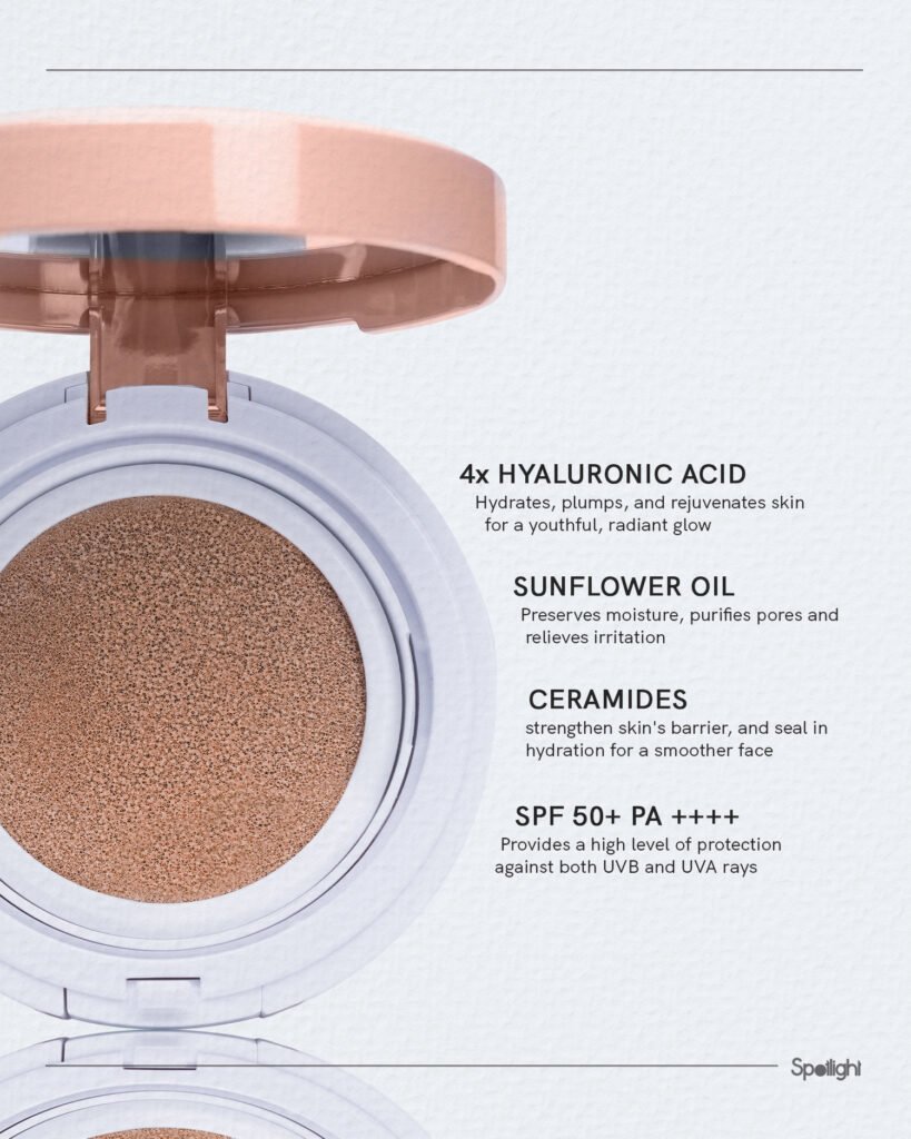 Spotlight Cosmetics brings your clean beauty experience to the next level with its innovative Spotlight Serum Cushion Foundation SPF 50+ PA+++!