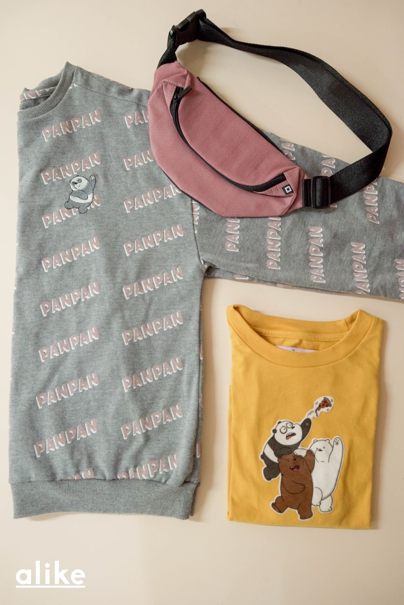 There are boxy and ringer tees stitched with velvety detail, while dreamy striped shirts have these famous bears playfully embroidered on it. Not only that, there’s also a pair of white faux leather lace-ups in this collection, featuring the three bears wearing shades doing husky poses. Its shoelaces have paw prints all over it, too! And before we forget, they have lovely coin purse designs that you can dedicate for each day of the week.