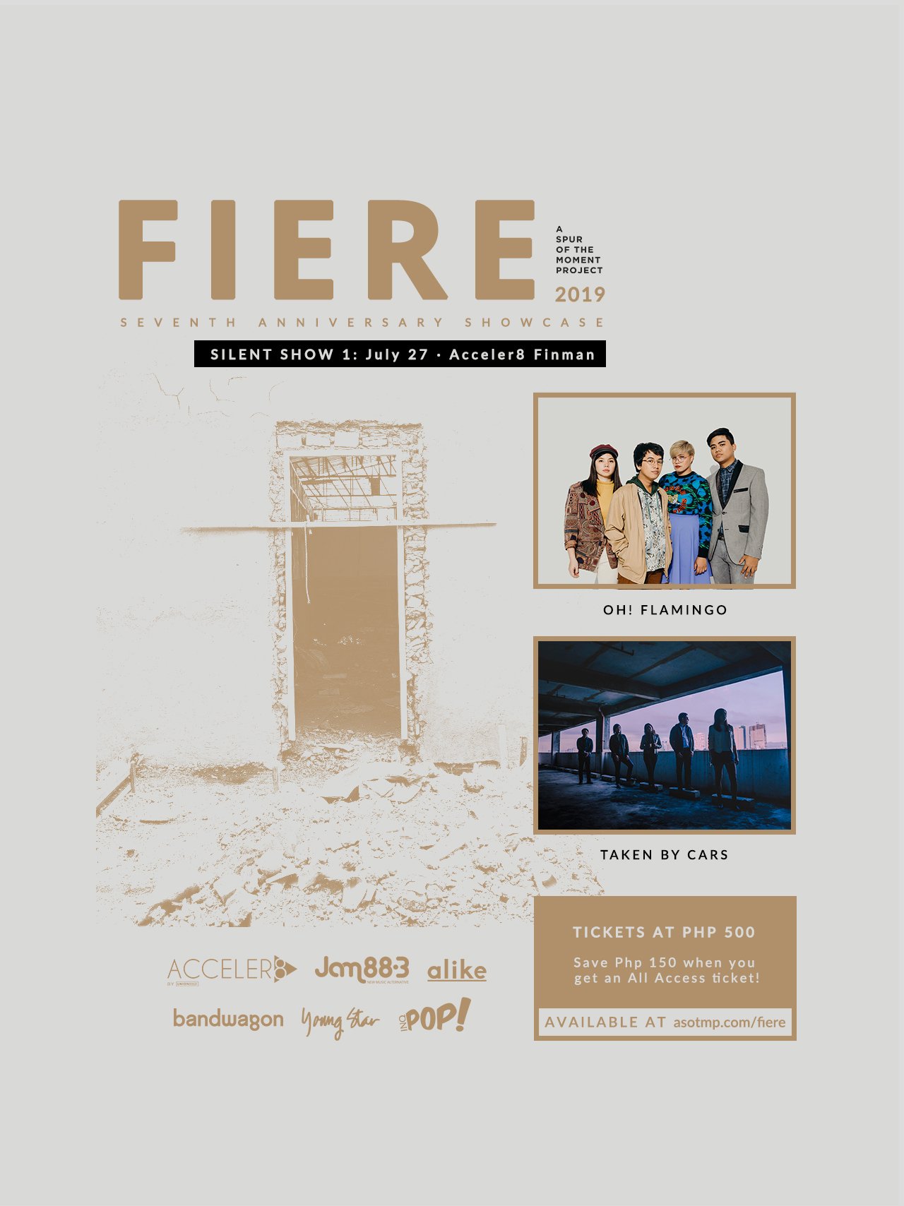 The first of the two “silent” shows will be held on July 27, 2019, Saturday, at Acceler8 Finman in Salcedo Village, Makati City, Philippines. It will feature extended sets from indie rock quartet Oh, Flamingo! and dance-rock band Taken By Cars.