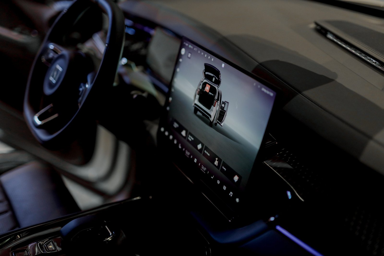 The cabin is outfitted with a 15.05-inch touchscreen OLED display, and a 17-inch ceiling-mounted OLED display for rear passengers.